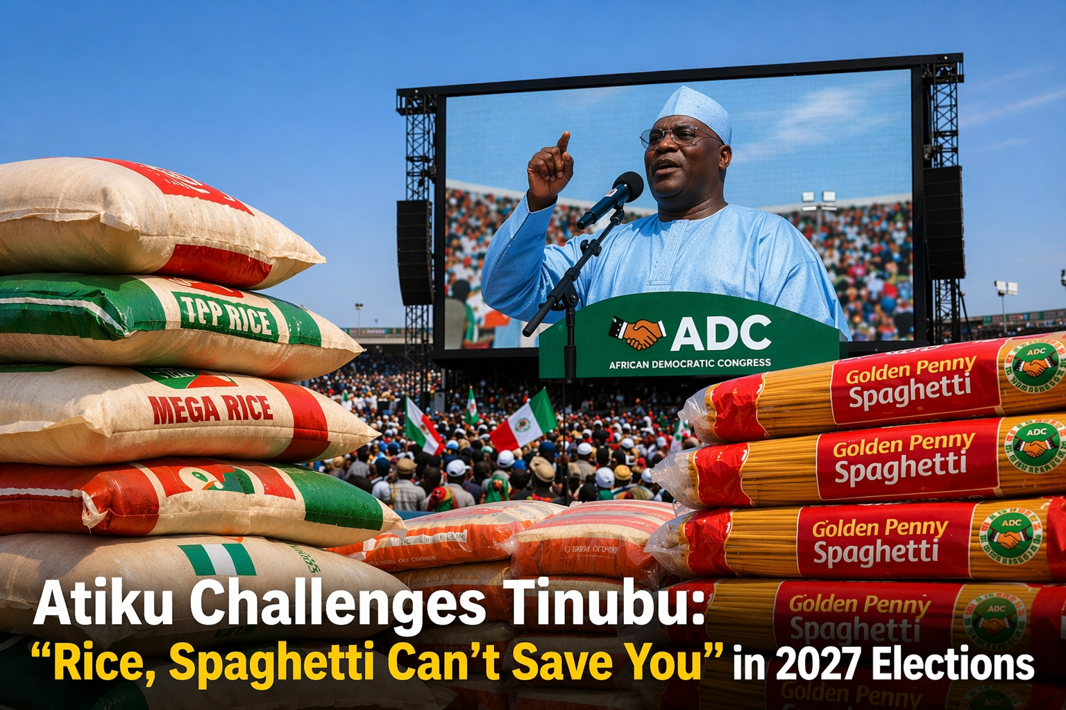 Atiku Challenges Tinubu: “Rice, Spaghetti Can’t Save You” in 2027 Elections